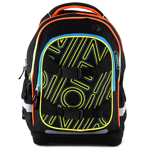 Perfektně zpracovaný batoh s vnitřním prostorem dvoukomorovým, kde druhá kapsa je oddělena přepážkou, bezpečně uzavíratelný na zip. Prostorná přední kapsa s praktickým organizérem oddělena přepážkou. Přední strana batohu vybavena dvěma popruhy.Anatomicky tvarovaná záda s měkkou vnější vložkou a vnitřní kovovou výztuhou udržují stálý tvar batohu. Kapsy na láhev po obou stranách batohu. Nastavitelné a široké měkké ramenní popruhy pro maximální pohodlí. Reflexní prvky zajistí bezpečnost dítěte v silničním provozu. Anatomický systém zajistí prodyšnost. Vyztužené dno se čtyřmi kulatými podpěrami. Velké měkké poutko přizpůsobené dětské ruce a menší poutko na suchý zip. Parádní batoh, který udělá velkou radost všem mladším školákům! Vhodný pro 1. a 2. třídu základní školy.Rozměry batohu: 43 x 32 x 13 cm. Váha batohu: 986 g.Materiálové složení: 100% polyester.