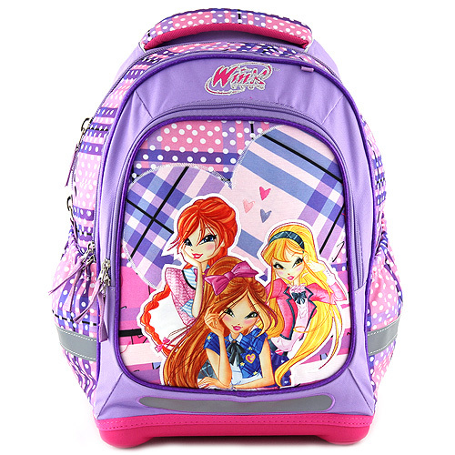 Perfektně zpracovaný batoh s vnitřním prostorem dvoukomorovým, kde druhá kapsa je oddělena přepážkou, bezpečně uzavíratelný na zip. Prostorná přední kapsa s praktickým organizérem oddělena přepážkou. Přední stranu zdobí potisk víl z Winx Clubu!Anatomicky tvarovaná záda s měkkou vnější vložkou a vnitřní kovovou výztuhou udržují stálý tvar batohu. Kapsy na láhev po obou stranách batohu. Nastavitelné a široké měkké ramenní popruhy pro maximální pohodlí. Reflexní prvky zajistí bezpečnost dítěte v silničním provozu. Anatomický systém zajistí prodyšnost. Vyztužené dno se čtyřmi kulatými podpěrami. Velké měkké poutko přizpůsobené dětské ruce a menší poutko na suchý zip. Parádní batoh, který udělá velkou radost všem mladším školačkám! Vhodný pro 1. a 2. třídu základní školy.Rozměry batohu: 44 x 30 x 16 cm. Váha batohu: 1 011 g.Materiálové složení: 100% polyester.