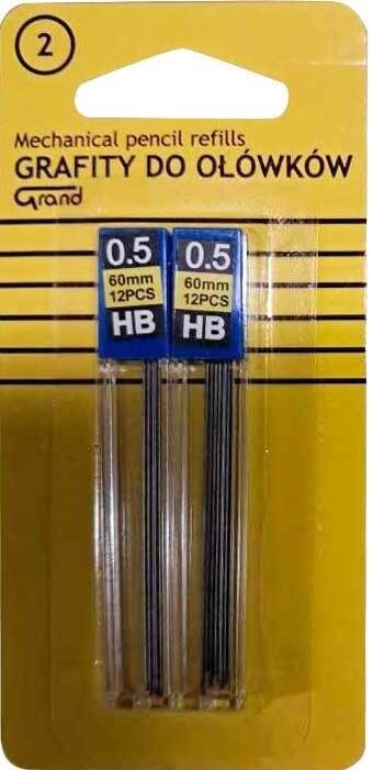 Grafity do ołówków automat. 0,5mm HB 12sztx2 GRAND