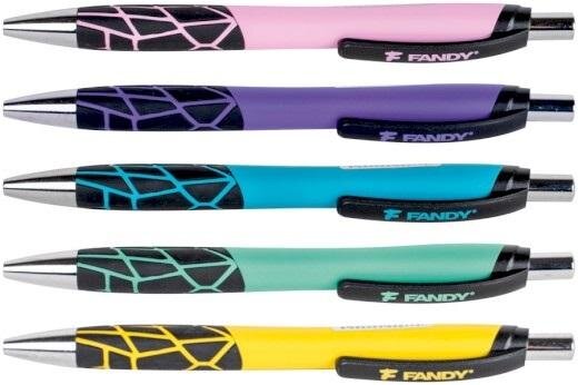 plastikowy długopis, automatyczny, ergonomiczna obudowa z uchwytem antypoślizgowym, wymienny wkład F-411, niebieski kolor tuszu, grubość linii 0,7 mm, miks kolorów