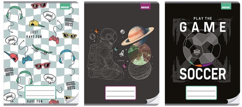 Dodatkowo, środek zeszytu został zadrukowany trzylinią w różnych kolorach, co ułatwia organizację notatek oraz czytelność zapisanych treści.