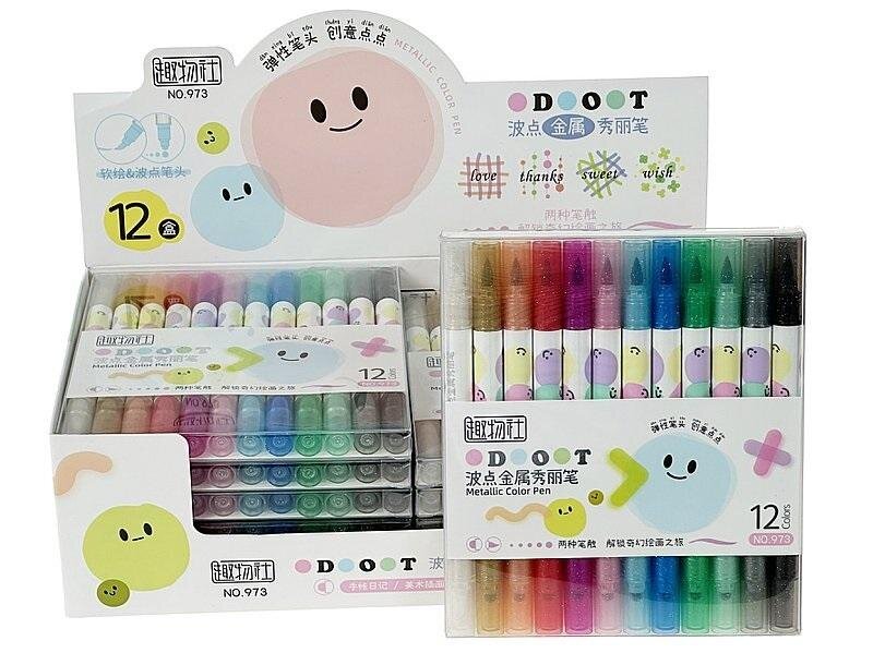 Flamastry dwustronne 12 kolorów metaliczne, cena za 1 zestaw. číst celé
