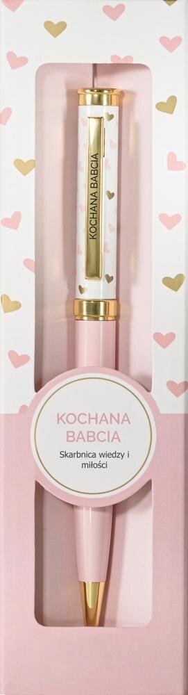 Długopis zachwyca oryginalnym wzorem i nowoczesnym designem. Wyposażony w niebieski, wymienny wkład, będzie praktycznym i stylowym dodatkiem. Mamy nadzieję, że to właśnie idealny prezent dla bliskiej Ci osoby! SPECYFIKACJA DŁUGOPISU: Personalizowany grawer: Kochana Babcia Ciekawy wzór i design Nowoczesna kolorystyka Materiał: metal Eleganckie opakowanie Wymienny wkład Kolor wkładu: niebieski
