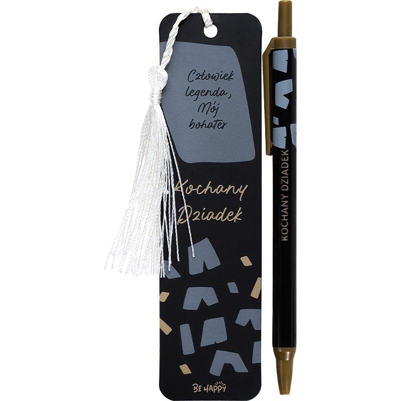 Zakładka i długopis "Kochany Dziadek" Stylowy zestaw, który doskonale sprawdzi się jako prezent dla każdego Dziadka. Zakładka z napisem "Człowiek legenda, Mój bohater" oraz dekoracyjnym chwostem to praktyczny i elegancki dodatek dla miłośników książek. Długopis z napisem "Kochany Dziadek" świetnie uzupełnia zestaw, dodając mu funkcjonalności. Zawartość zestawu: Zakładka z chwostem w czarno-złotej kolorystyce. Długopis w klasycznej czerni ze złotym napisem. Cechy produktu: Zakładka: trwały nadruk, solidne wykonanie. Długopis: lekki, wygodny w użytkowaniu. Kolorystyka: czarno-złota z białymi akcentami. Na jakie okazje? Dzień Dziadka Urodziny Święta Elegancki prezent, który wyrazi wdzięczność i szacunek dla każdego Dziadka!
