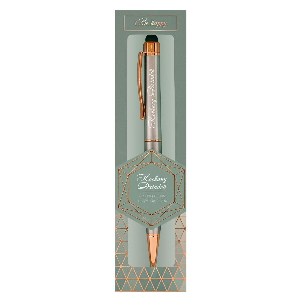 Elegancki długopis ,,Kochany Dziadek" - praktyczny prezent Wyjątkowy długopis Kochany Dziadek to doskonały sposób na okazanie wdzięczności i podarowanie praktycznego upominku. Klasyczny design w odcieniach zieleni i złota, wraz z subtelnym napisem ,,Kochany Dziadek", sprawia, że produkt wyróżnia się elegancją i ponadczasowym stylem. Długopis wyposażony jest w funkcjonalną końcówkę typu touch pen, umożliwiającą wygodne korzystanie z urządzeń z ekranem dotykowym, co czyni go praktycznym na co dzień. Wkład w kolorze niebieskim można łatwo wymienić, dzięki czemu długopis posłuży przez długi czas. Całość zapakowana jest w eleganckie pudełko prezentowe, gotowe do wręczenia. Specyfikacja produktu: Napis: Kochany Dziadek Funkcjonalność: końcówka typu touch pen do ekranów dotykowych Kolor wkładu: niebieski (wymienny) Opakowanie: eleganckie pudełko prezentowe Materiał: metal Długopis Kochany Dziadek to idealne połączenie stylu i funkcjonalności - wyjątkowy upominek dla każdego dziadka.