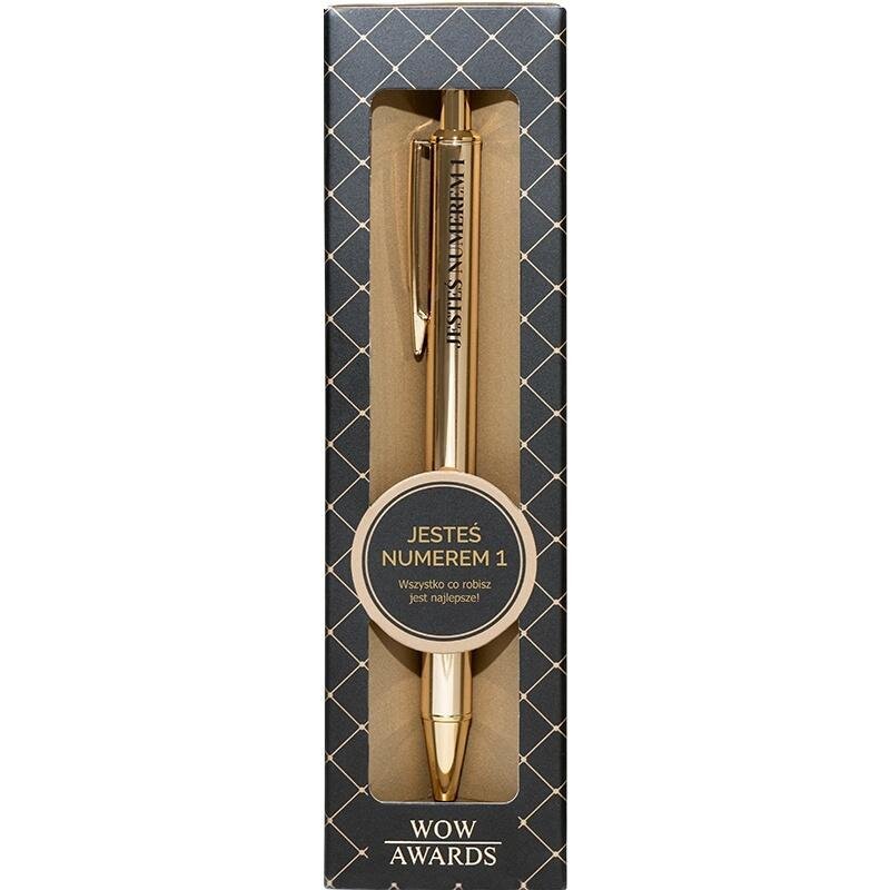 Personalizowany długopis prezentowy z napisem (dedykacja widoczna na zdjęciu) - idealny upominek dla bliskiej osoby Odkryj wyjątkowy sposób, aby wyrazić swoje uczucia - z naszym personalizowanym długopisem prezentowym. Idealny dla każdej ważnej i wyjątkowej osoby Twoim życiu, bez względu na okazję. Świetnie sprawdzi się jako upominek na szereg okazji. Wygląd długopisu Ten elegancki złoty długopis urzeka swoją elegancką, stylową kolorystyką i modnym designem. Złoty odcień, wzbogacony czarnym napisem, nadaje mu wyrafinowany charakter. Unikalny napis wygrawerowany na długopisie, dodaje osobistego akcentu. Specyfikacja: Materiał: Plastik, metal Złoty design Kolor: czarno-złoty Wymienny wkład Kolor wkładu: niebieski Opakowanie: Eleganckie kartonowe pudełko prezentowe