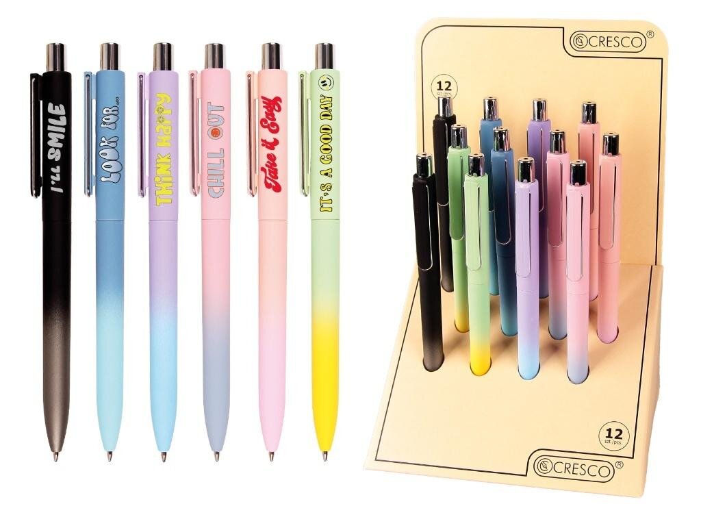 NOTE to długopis z wymiennym wkładem niebieskim o grubości linii 1mm. Mechanizm wysuwania wkładu pstrykany, ciekawa kolorystyka. Delikatne softowe wykończenie, ułatwia trzymanie długopisu, a srebrne delikatne elementy wykończenia dodają mu elegancji.