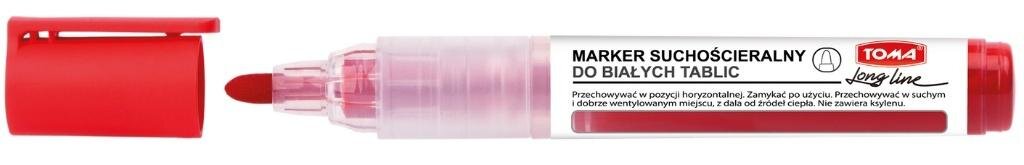 Marker suchościeralny TO-265 do pisania po białych tablicach o wyjątkowo długiej linii pisania 1000 m, grubość linii 3 mm, wzmocniona okrągła końcówka, widoczny płynny tusz, nie zawiera ksylenu.