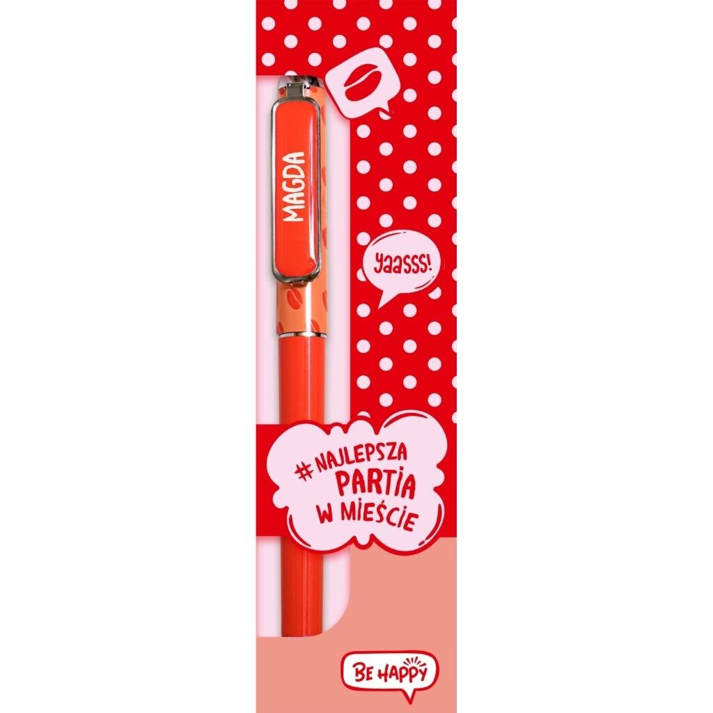 Długopis w stylu pop art to propozycja, która łączy nowoczesne wzornictwo z funkcjonalnością. Dostępny w intensywnych, przyciągających wzrok kolorach oraz z oryginalną dedykacją (widoczną na zdjęciu), sprawdzi się jako drobny upominek na wiele okazji - od urodzin, imienin i rocznic, po Walentynki, Dzień Kobiet czy Dzień Mężczyzny. Charakterystyczna estetyka pop art nadaje mu wyrazistego i niepowtarzalnego stylu, a solidne wykonanie z plastiku i metalu zapewnia trwałość. Długopis wyposażony jest w wymienny wkład z niebieskim tuszem. Całość została zapakowana w eleganckie opakowanie prezentowe, co czyni z niego gotowy do wręczenia prezent.