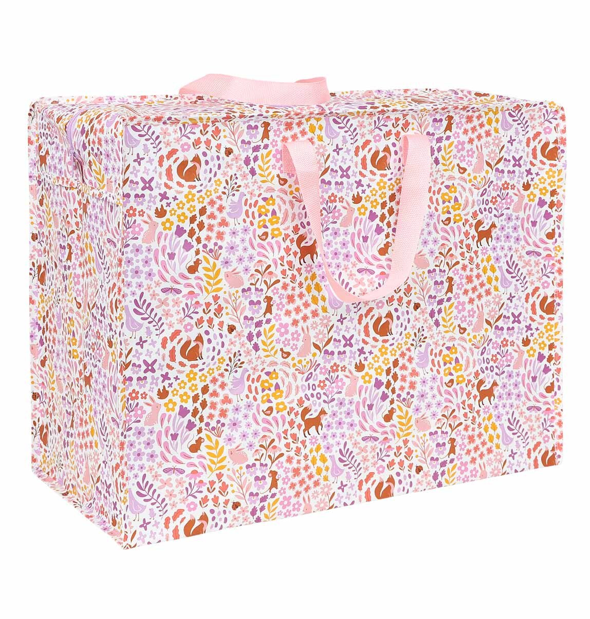 Velká úložná taška s potiskem zvířat v květinové zahrádce je ideální pro skladování oblečení, přikrývek a hraček, ale lze ji také použít na pláž nebo do bazénu. Taška je vyrobena z recyklovaného plastu a zavírá se na zip. Tašku lze snadno složit, takže pokud jí zrovna nevyužíváte, nezabírá příliš místa.