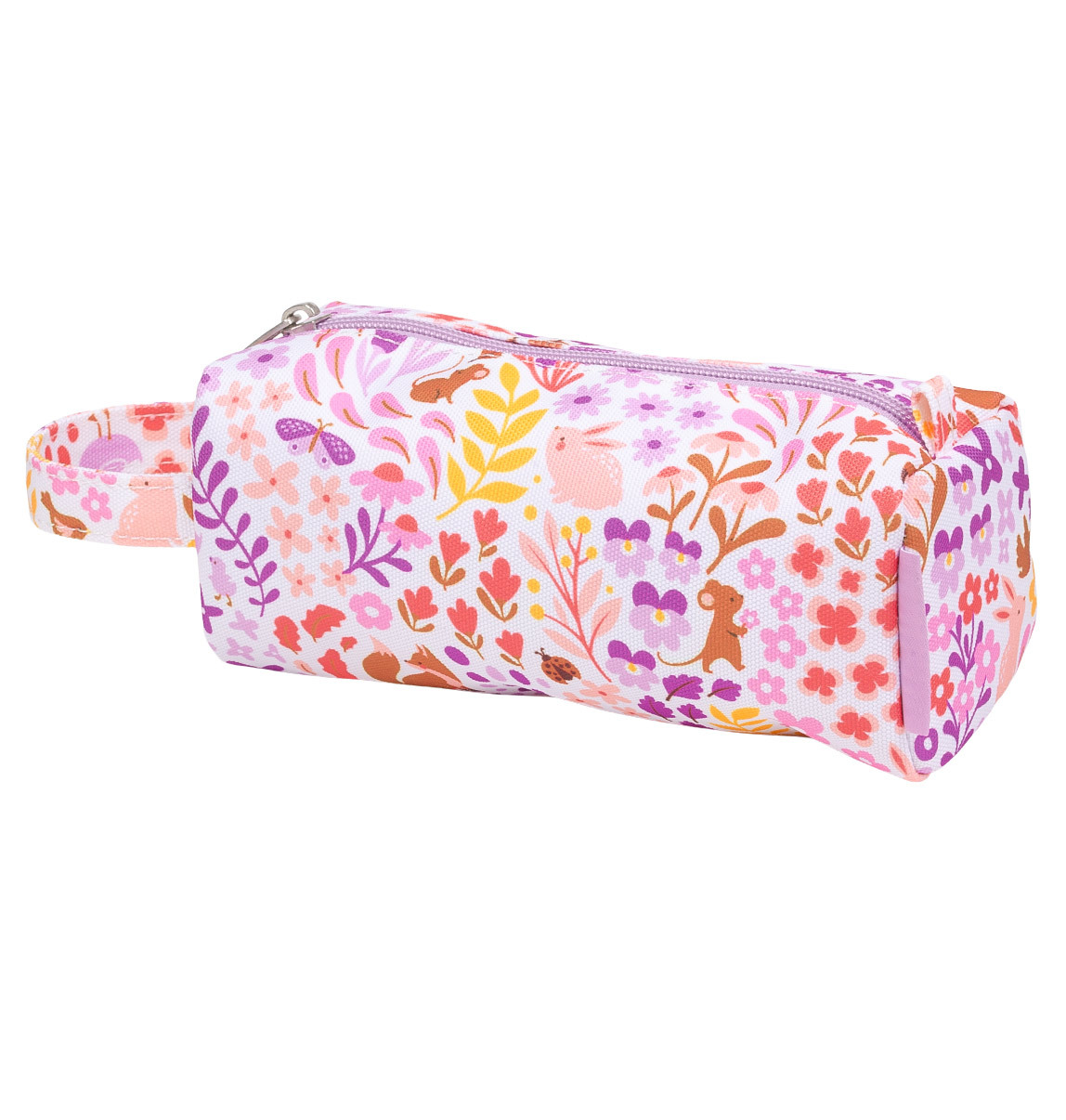 Žluté pouzdro na pastelky, fixy nebo psací potřeby s potiskem zvířat v květinové zahrádce je vyrobené z udržitelného polyesteru. Je ideální na cesty, na nošení do školy nebo na kroužky. Pouzdro se zapíná na zip, je podšité a má pohodlnou rukojeť. Tento skvělý penál udrží všechna vaše pera a tužky bezpečně na jednom místě.