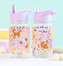 Průhledná dětská láhev na pití s potiskem zvířátek v květinové zahrádce. Láhev je nepropustná a ideální na výlety nebo do školky. Můžete si poskládat krásnou a kompletní sadu ve stejném designu - lahev na pití, batoh a krabička na svačinu.
