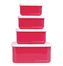 Sada čtyř krabiček v jednotném designu na oběd a svačinu ve čtyřech různých velikostech. Krabičky se snadno otevírají a zavírají a lze je stohovat do sebe pro pohodlné skladování.