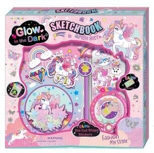 Zestaw zawiera: - sketchbook z czystymi kartkami do rysowania i dekorowania - ozdobny długopis świecący w ciemności - bransoletka z charmsami świecąca w ciemności - ozdobne naklejki świecące w ciemności - arkusz tradycyjnych naklejek - dekoracyjne gwiazdki świecące w ciemności Zestaw zapakowany w...
