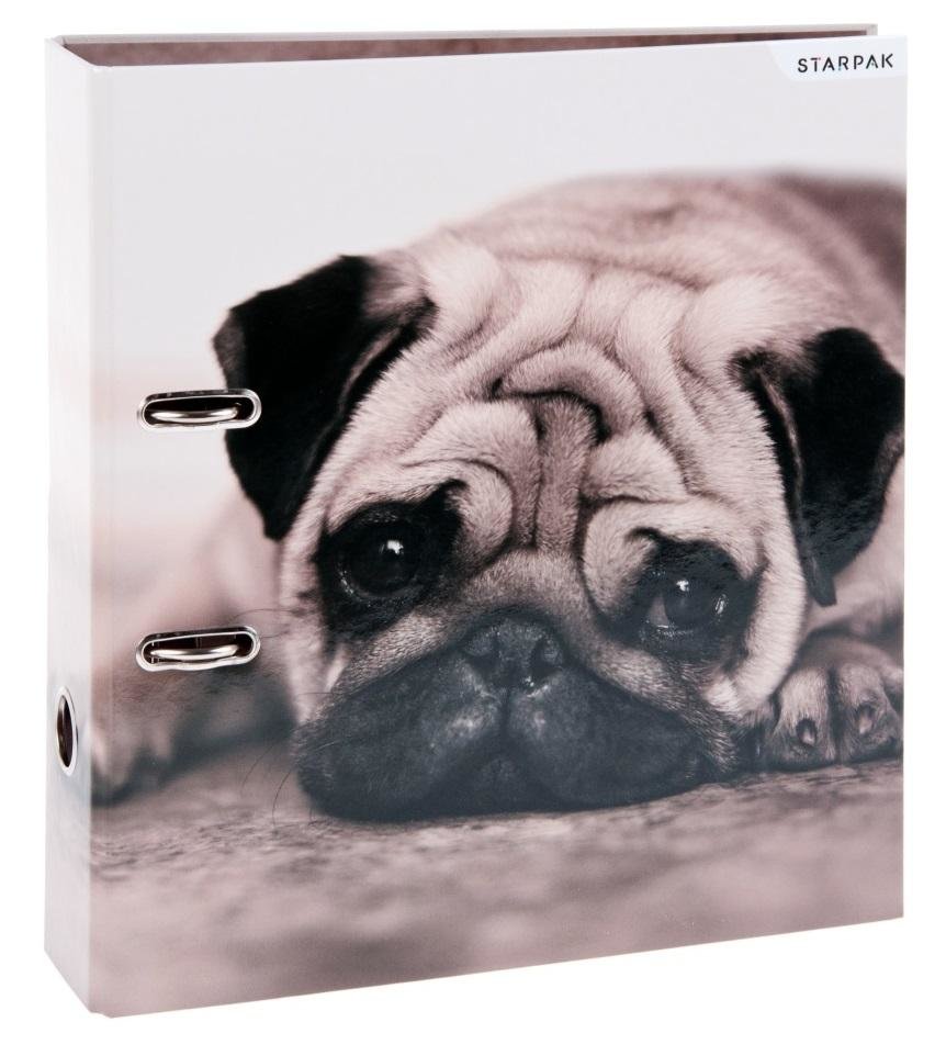 Segregátor formátu A4 s šířkou hřbetu 7 cm ze série Starpaki je vyroben z pevného kartonu potaženého odolnou polypropylenovou fólií. Je vybaven spolehlivým pákovým mechanismem a silnou upínací lištou pro bezpečné uchycení listů. Navíc disponuje měkkým plastovým madlem pro pohodlné nošení a kovovou výztuhou oček, která zajišťuje dlouhou životnost. Celý segregátor - včetně vnitřní výstelky - je zdoben krásnou grafikou s obrázky psů, která potěší milovníky těchto čtyřnohých mazlíčků.
