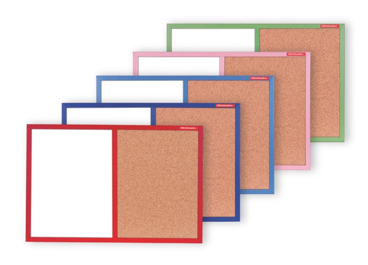 Tablica DUO o wym. 60x40 cm w ramie drewnianej, lakierowanej (MIX kolorów) o szer.16 i grub.14 mm. Powierzchnia tablicy wykonana z naturalnego materiału korkowego i ze stali lakierowanej o właściwościach suchościeralnych i magnetycznych. Tył tablicy - pilśnia. W zestawie 5 szt. pinezek beczułek i 3 szt. magnesów oraz komplet haczyków. Montaż tablicy w pionie lub w poziomie. Wzmocnienia: dodatkowe zszywki z tyłu tablicy. Tablica przeznaczona do zawieszania kartek za pomocą pinezek oraz do pisania markerami i zawieszania kartek za pomocą magnesów. Produkt do użytku wewnętrznego. Tablica doskonale sprawdza się jako nośnik informacji, zarówno w biurze, jak i w szkole i w domu. Tablica DUO o wym. 60x40 cm. Powierzchnia tablicy wykonana z naturalnego materiału korkowego i ze stali lakierowanej o właściwościach suchościeralnych i magnetycznych. Tył tablicy - pilśnia. Rama drewniana lakierowana (MIX kolorów: czerwony, różowy, zielony, niebieski, granatowy) o szer.16 i grub.14 mm. W zestawie 5 szt. pinezek beczułek i 3 szt. magnesów oraz komplet haczyków. Montaż tablicy w pionie lub w poziomie. Wzmocnienia: dodatkowe zszywki z tyłu tablicy. Tablica przeznaczona do zawieszania kartek za pomocą pinezek oraz do pisania markerami i zawieszania kartek za pomocą magnesów. Produkt do użytku wewnętrznego. Tablica doskonale sprawdza się jako nośnik informacji, zarówno w biurze, jak i w szkole i w domu.