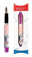 Cechy: - gumowy i profilowany uchwyt ułatwiający prawidłowe trzymanie pióra - zasilane standardowymi nabojami atramentowymi - pióro wieczne posiada stalówkę irydową o grubości M. Wzór widoczny na zdjęciu. Pióro zapakowane w kartonowe etui z zawieszką.