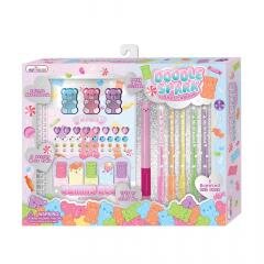 Zestaw zawiera: - kołozeszyt z czystymi kartkami - 5 długopisów żelowych - długopis tradycyjny w 2 kolorach - 3 miękkie naklejki - kryształki samoprzylepne - 5 wzorów karteczek samoprzylepnych - długopis z dwoma końcówkami - jedna to tradycyjny długopis do pisania, a druga to \'niewidzialny tusz\'. Zapiski tym tuszem będą widoczne po podświetleniu ich specjalną lampką UV, która znajduje się w zatyczce długopisu - lampka LED na klips - arkusz naklejek Zestaw zapakowany w ozdobne opakowanie prezentowe. Wiek: 5+