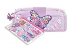 Rozkładany piórnik na przybory szkolne. Wiele przegródek i miejsca na drobiazgi, zamykany na rzep z ozdobą. Do piórnika dołączona jest przezroczysta saszetka zamykana na zamek z 3 mini długopisami żelowymi. Wiek: 5+ číst celé