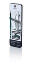 Ołówki przeznaczone do kreślenia, szkicowania i rysowania.W zestawie ołówki o twardości: 3B, 2B, B, HB, H, 2H.Hexagonalny kształt, metalowe pudełko.