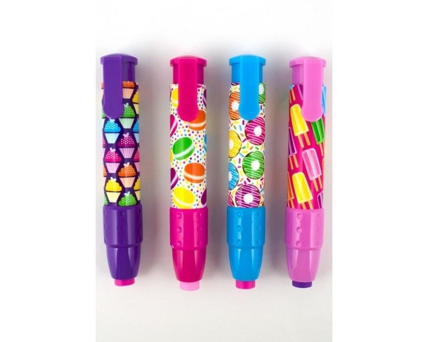 Mechaniczke Gumki do Ścierania Słodycze są dostępne w 4 stylach i kolorach.
