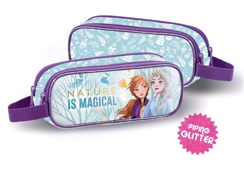 Kraina Lodu 2, Piórnik z Dwiema Kieszeniami, Saszetka. Podwójny piórnik z wizerunkiem Elsy i Anny z kultowej bajki "Kraina Lodu 2". Posiada dwie pojemne kieszenie na wszystkie szkolne drobiazgi. Każda zamykana na suwak. Kieszenie wykończone elegancką podszewką we wzory. Piórnik...
