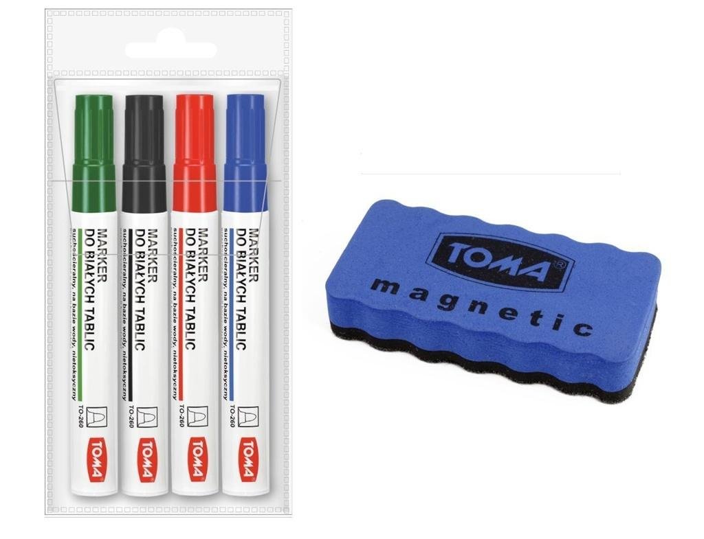 Marker do białych tablic 4 sztuki + ścieracz TOMA