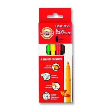 Szkolne flamastry zmywalne z ergonomicznym trójbocznym uchwytem. W przypadku pobrudzenia ubrania lub rąk (czy też innych przedmiotów) łatwe w usunięciu za pomocą wody z mydłem (pranie w temperaturze 40 st. C). Bezpieczne dla użytkownika, produkowane zgodnie z europejskimi normami bezpieczeństwa. Mają gwarantowaną przydatność do użycia aż do 4 lat. Komplet 6 kolory w kartoniku.