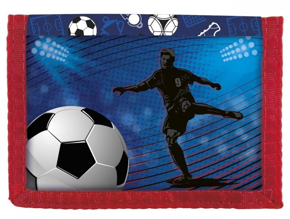 Niebieski portfel z popularnym wzorem w piłkę nożnąZamykany jest na solidny rzep číst celé