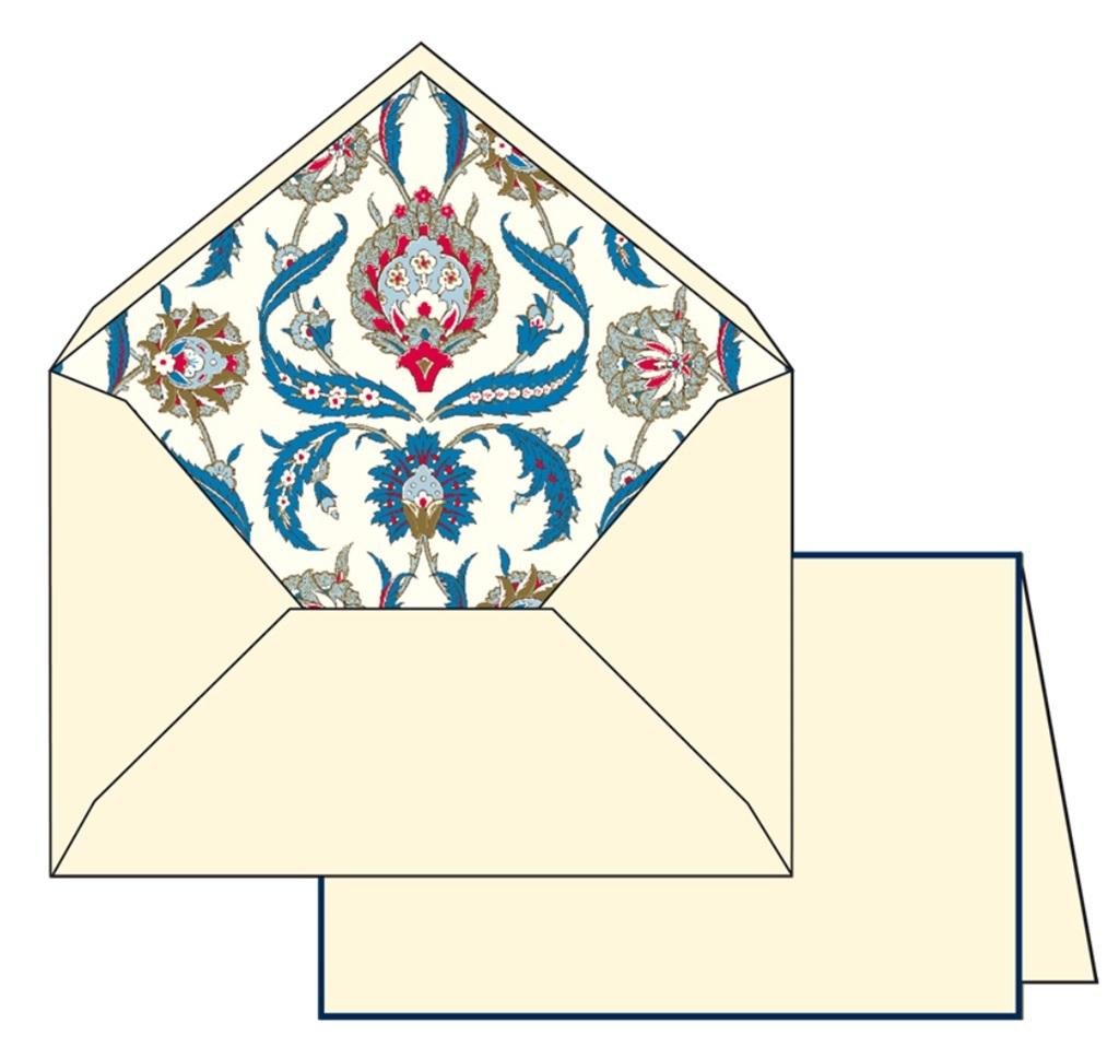 Papeteria w ozdobnym pudełku z przykrywką, papier o gramaturze 240g/m2. W zestawie znajduje się 10 kopert i 10 karnetów. Produkt z ekskluzywnej galanterii wyprodukowany we włoskiej manufakturze.