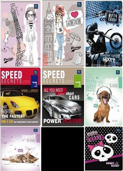 Zeszyt A5 kratka, 32 kartki, mix wzorów. číst celé