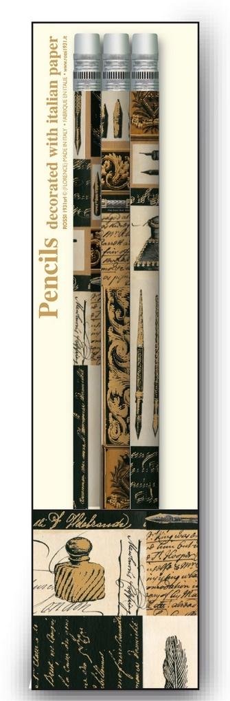 Zestaw 3 ozdobnych ołówków ręcznie owiniętych w dekoracyjny włoski papier. Produkt z ekskluzywnej galanterii wyprodukowany we włoskiej manufakturze.