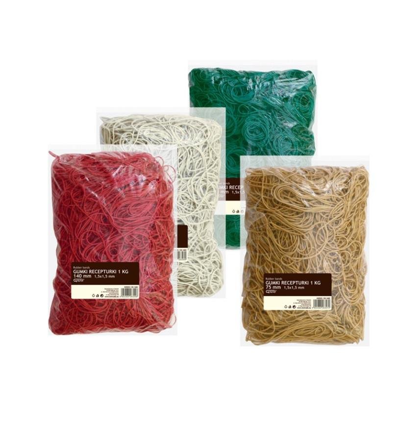 Elastyczne gumki dostępne w 4 kolorach: naturalnym, czerwonym, zielonym oraz białym. Pakowane w woreczki.Rozmiar: 1,5 x 1,5mm.Średnica: 40mm.Długość po złożeniu: 7cm.Opakowanie: 1kg. číst celé