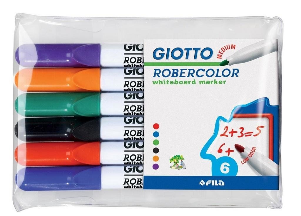 Markery duchościeralne do białych tablic.6 kolorów: fioletowy, pomarańczowy, zielony, czarny, czerwony, niebieski.