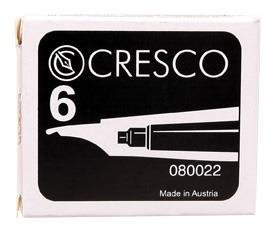 Naboje atramentowe marki CRESCO wyposażone są w najwyższej jakości atrament w kolorze czarnym. Zapewniając najwyższy standard pisania niebieski szybkoschnący atrament rekomendowany dla osób piszących lewą ręką formuła poprawiającą jakość pisania piór kulkowych zasilanych standardowymi nabojami atramentowym zapachowym w ośmiu różnych zapachach.Wszystkie naboje atramentowe marki CRESCO można wykorzystywać do tradycyjnych piór wiecznych. 6 sztuk w opakowaniu.