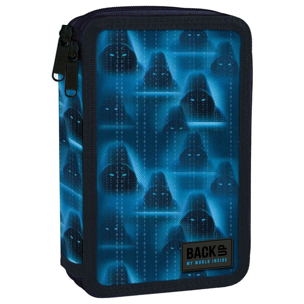 Wirtualny, tajemniczy byt, postać z popularnej gry, zakonnik, kosmita, a może duch o niecnych zamiarach... Ile ludzi tyle pomysłów. A Tobie z czym kojarzy się ten motyw? Jedyne, co możemy powiedzieć na pewno, że to czarny wzór z niebieskimi odcieniami podkręcającymi tajemniczość. Przenieś się w wirtualny świat pełen przygód i tajnych misji. Wyjątkowy print sprawi, że piórnik BackUP będzie towarzyszył Ci każdego dnia. Dwukomorowy piórnik z wyposażeniem: