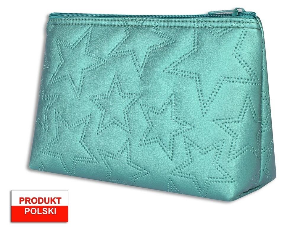 Piórnik kosmetyczka wykonany z tkaniny skóropodobnej, ozdobionej pikowaniem przedstawiającym gwiazdki. Piórnik o wymiarach 21x13x7[cm]. Piórnik bez wyposażenia.