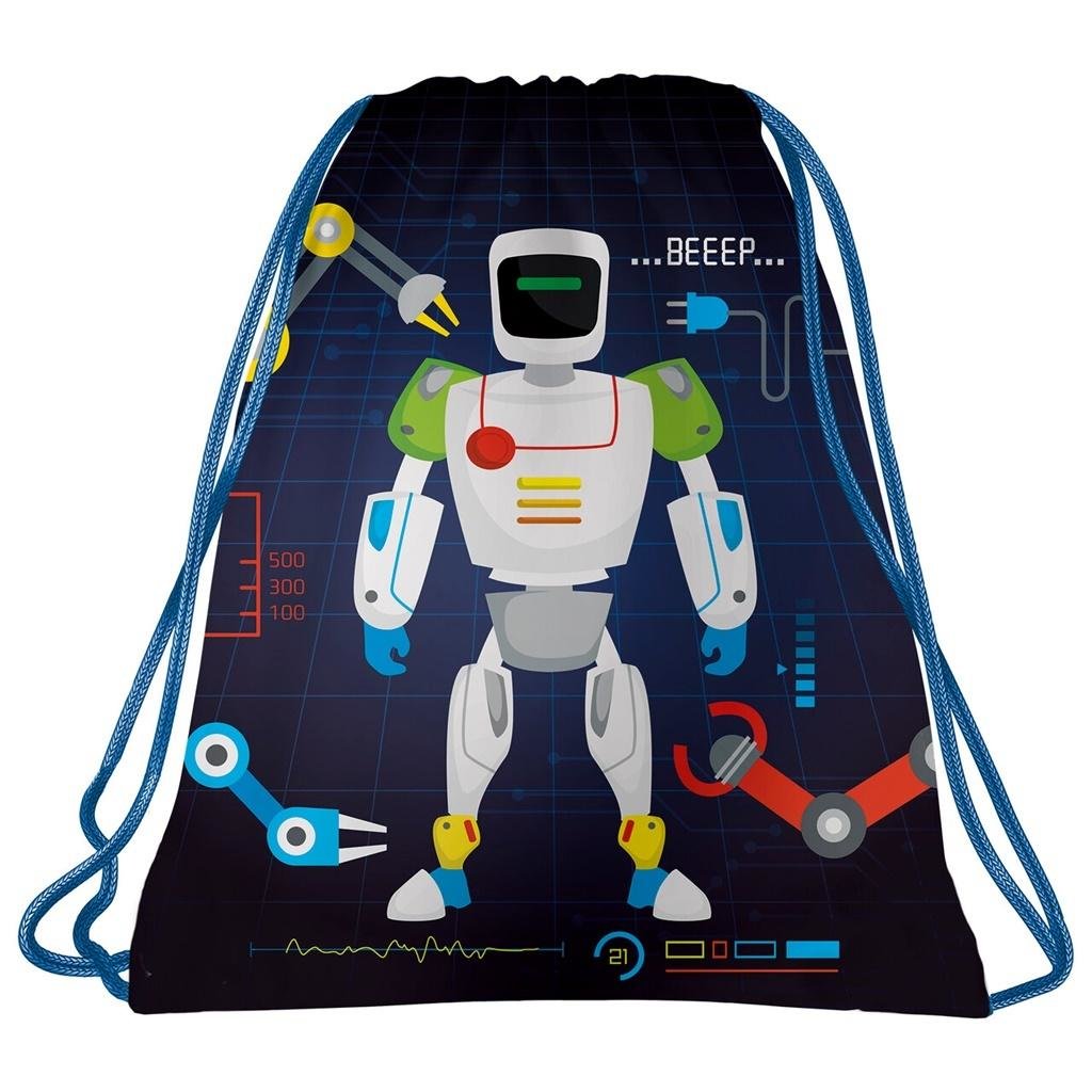 Worek na obuwie, idealny na szkolne treningi i na basen. Dwustronny, posiada podwójne boczne sznurki, które umożliwiają noszenie worka w rękach, na ramieniu czy na plecach. Na odwrocie znajduje się miejsce do wpisania danych osobowych dziecka.Wymiary: 41x35 cm.