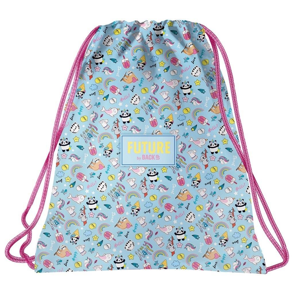 Worek na obuwie, idealny na szkolne treningi i na basen. Dwustronny, posiada podwójne boczne sznurki, które umożliwiają noszenie worka w rękach, na ramieniu czy na plecach. Na odwrocie znajduje się miejsce do wpisania danych osobowych dziecka.Wymiary: 41x35 cm.