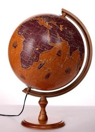 Globus 320 mm mapa podświetlana z ręcznie rysowanymi żaglowcami, stopka drewno, cięciwa plastikowa. číst celé