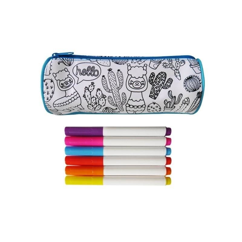 Piórnik do kolorowania z flamastrami lama