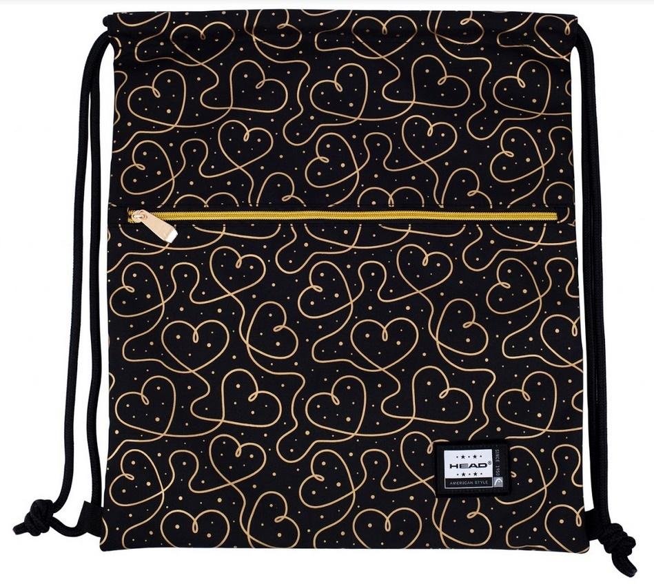 Miejski worek na plecy Head powstał z myślą o nastoletnich romantyczkach i romantykach. Designerskie złote serduszka na czarnym tle przypadną do gustu każdemu, kto ceni modne i ponadczasowe wzornictwo. Worek na plecy Head to absolutny must have tego sezonu, który z łatwością zastąpi ulubiony plecak.