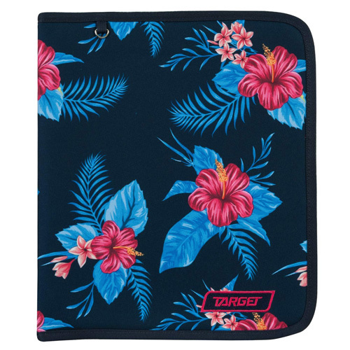 Desky na zip Target Modré s květinami, formát A4, s kroužkovým mechanismem