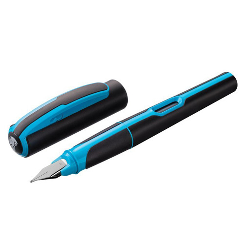 Plnící pero Pelikan Typ hrotu M, pro leváky i praváky, neonová modrá