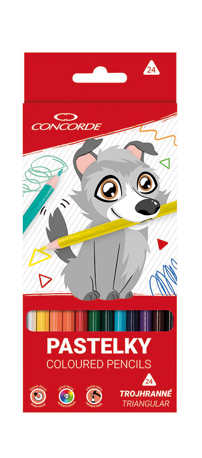 Školní pastelky trojhranné, 24 jasných barev. Vyrobené z lipového dřeva, lakované, odolné jádro. Průměr jádra 3mm. Dodávané v papírové krabičce s Volfíkem. číst celé