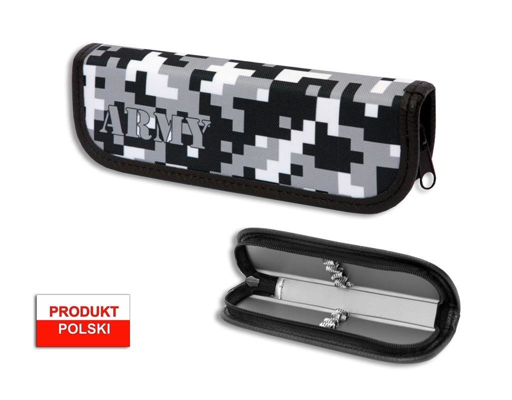 Piórnik szkolny WAR-1222 twardy mały moro szaro/cz
