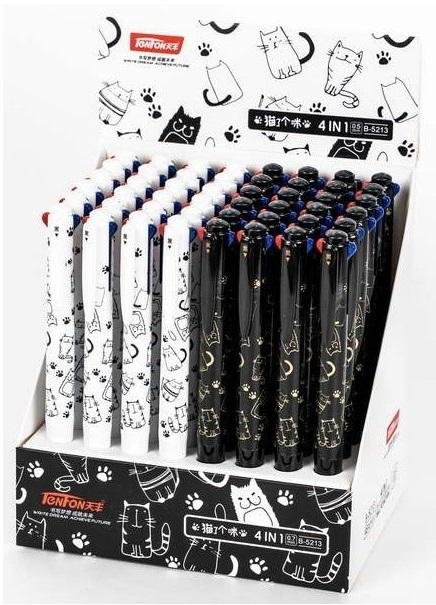 Plastikowy długopis, automatyczny, ergonomiczna obudowa z uchwytem antypoślizgowym, wymienny wkład F-Cat, kombinacje czerwono-niebiesko-zielono-czarny, grubość linii 0,5 mm, miks kolorów číst celé