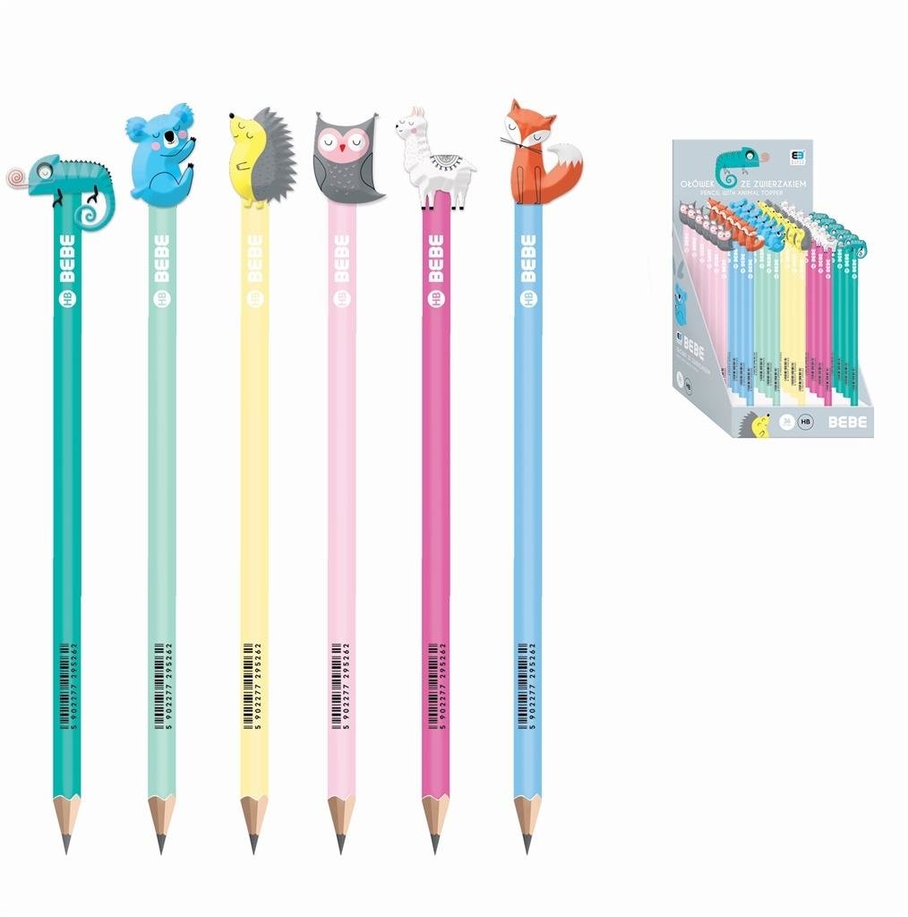 Opakowanei zbiorcze 36szt.Ołówek HB. Okrągły profil. Ołówek zakończony figurką zwierzaka z serii BEBE. 6 wzorów do wyboru. 36 szt. w displayu. číst celé