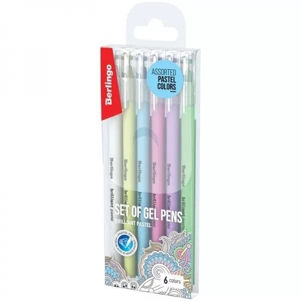 Zestaw żelowych długopisów Berlingo Brilliant Neon w 6 neonowych kolorach (biały, żółty, zielony, różowy, niebieski, fioletowy).
