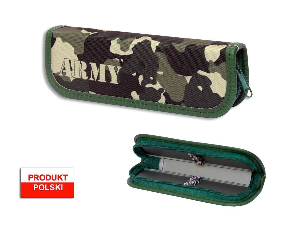 Piórnik szkolny WAR-1223 twardy mały moro zielone
